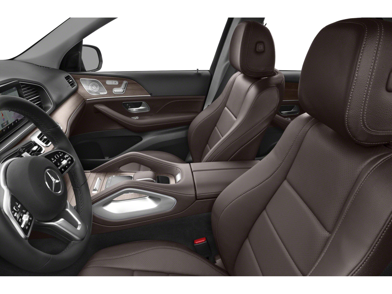 The cabin fits five to seven passengers depending on configuration, showcasing power leather seating, a panoramic-style sunroof, heated seats, wireless phone charging, remote start, keyless entry and push-button start. The MBUX tech interface integrates Android Auto, Apple CarPlay, Bluetooth® and navigation, supported by parking assistance, a rearview camera, blind spot monitoring, emergency braking assist and multiple drive safety aids for added confidence. Premium touches include alloy wheels, power tailgate, LED lighting, a turbocharged performance setup and quiet highway ride that defines the GLE luxury experience.