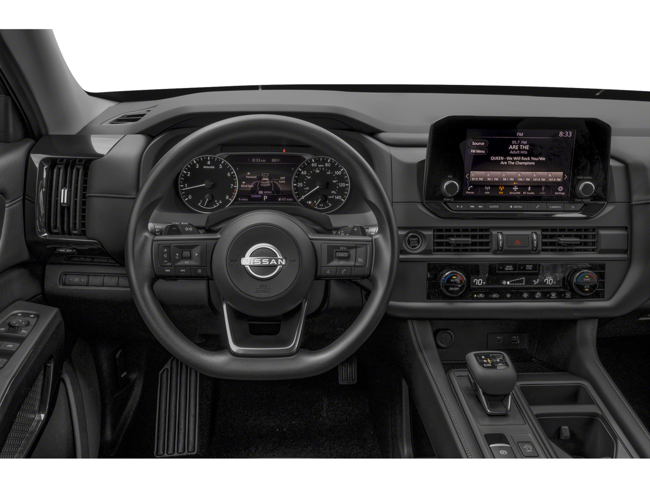 3rd row seats: bench, 4-Wheel Disc Brakes, 6 Speakers, ABS brakes, Air Conditioning, Alloy wheels, AM/FM radio: SiriusXM, Auto High-beam Headlights, Automatic temperature control, Axle Ratio: 4.334, Bench Seat Carpeted Floor Mats (Set of 4), Black Splash Guards (Set of 4), Blind Spot Warning, Brake assist, Bumpers: body-color, Cloth Seating Surfaces, Delay-off headlights, Driver door bin, Driver vanity mirror, Dual front impact airbags, Dual front side impact airbags, Electronic Stability Control, Four wheel independent suspension, Front anti-roll bar, Front Bucket Seats, Front Center Armrest, Front dual zone A/C, Front reading lights, Fully automatic headlights, Illuminated entry, Knee airbag, Low tire pressure warning, NissanConnect featuring Apple CarPlay and Android Auto, Occupant sensing airbag, Outside temperature display, Overhead airbag, Overhead console, Panic alarm, Passenger door bin, Passenger vanity mirror, Power door mirrors, Power steering, Power windows, Radio data system, Radio: AM/FM Audio System, Rear air conditioning, Rear anti-roll bar, Rear Parking Sensors, Rear reading lights, Rear side impact airbag, Rear window defroster, Rear window wiper, Reclining 3rd row seat, Remote keyless entry, Security system, Speed control, Speed-sensing steering, Split folding rear seat, Spoiler, Steering wheel mounted audio controls, Tachometer, Telescoping steering wheel, Tilt steering wheel, Traction control, Trip computer, Variably intermittent wipers, Wheels: 18 x 8J Painted Alloy.