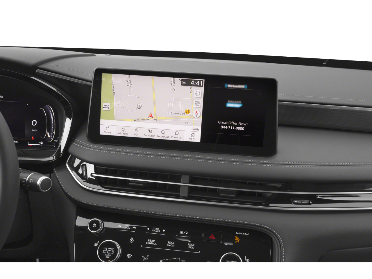 - Radio: Bose Performance Series -inc: 17 speakers, INFINITI InTouch 12.3" interactive display w/navigation (includes mapcare and premium traffic), INFINITI InTouch w/wireless Apple CarPlay integration and Android Auto (includes Bluetooth®), HD Radio technology, SiriusXM radio, WiFi hotspot, INFINITI voice recognition w/Siri Eyes Free/Google Assistant, INFINITI InTouch services, Active Noise Cancellation (ANC), Bluetooth® hands-free phone/voice control switches, data capable type-A and type C USB connection ports and steering wheel audio controls